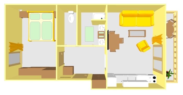 Tento jednoložnicový podkrovní apartmán nabídne pohodlí a romantiku až pro 4 osoby, prostornou terasu a skvělé kompletní vybavení. Velkou předností jsou také 2 oddělené místnosti se stylově zařízeným obývacím koutem a kuchyní.